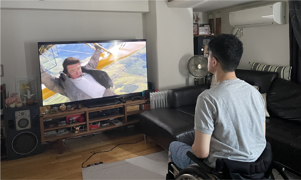以前はアウトドア(サイクリング、トレッキング等々)が好きで、自然の中で過ごす時間を楽しんでいましたが、障がいを持ってからはインドア中心の過ごし方に変わりました。最近は映画鑑賞をすることが多く、さまざまなジャンルの作品を観てリラックスしています。静かな時間の中で物語に没頭することで心が落ち着き、良いリフレッシュになっています。最近観て印象に残った作品は『マイ・インターン』です。